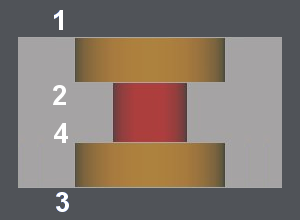 Es ist auch möglich, die gleiche Bearbeitung auf der oberen Fläche wie auf der hinteren Fläche zu programmieren (Senken oder Reiben). In diesem Fall ist eine vierte Option erforderlich.