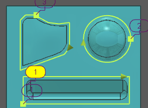 Klicken Sie auf das Symbol; Profil für Begrenzung erstellen/bearbeiten, die Ansicht wird automatisch auf die Draufsicht erzwungen, Wählen Sie die Art der Fläche : Ellipse (oder Kreis), Rechteck oder Manuell, Klicken Sie auf das Teil, um den Begrenzungsbereich zu positionieren: Sobald positioniert, kann das Profil modifiziert werden.