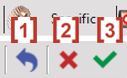 Quadrat. Während der Erstellung des Bereichs sind mehrere Symbole verfügbar: [1] Möglichkeit, die Aktion rückgängig zu machen und zum vorherigen Schritt zurückzukehren [2] Den aktuellen Bereich abbrechen [3] |