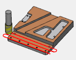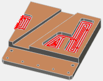 Der Durchgang wird angepasst : das Durchgangsinkrement wird angepasst, um die Bearbeitung der Oberseite von Inseln und der Unterseite der Tasche zu ermöglichen. |
