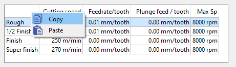 Hinweis : Wenn Sie den Werkzeugdurchmesser ändern, werden die Geschwindigkeitsparameter automatisch aktualisiert. |