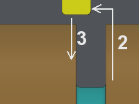 Gesamte RückzugstiefeBei tiefen Nuten, wenn das Werkzeug diese Tiefenhöhe erreicht ( 1 ), wird ein vollständiger Rückzug durchgeführt ( 2 ), bevor die Bearbeitung fortgesetzt wird ( 3 ). |
