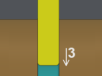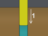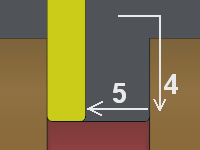 Nach TiefeDer Werkzeugweg ist ähnlich einem Entgraten. Die Nut wird in X bis zur Gesamttiefe bearbeitet ( 1 ), dann Rückzug und ein Z-Schritt ( 2 ), dann erneute Bearbeitung ( 3 ), usw. ( 4 & 5 ) |