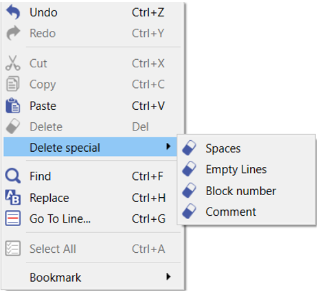 Zum Löschen ausgewählter Kategorien: Leerzeichen, Leere Zeilen, Blocknummer, Kommentar |