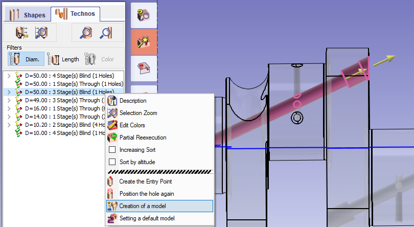 2/ Wenn Benutzerbohrung Vorlagen nicht verfügbar sind , können wir mit der rechten Maustaste auf die erforderliche Bohrung klicken und dann ' Erstellung eines Modells '. wählen. Diese Funktion ermöglicht die Erstellung der Basis des Modells: