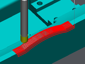 Projiziert ein Netz von parallele Linien auf die zu bearbeitende Form. GO2cam berechnet die Z-Höhe an jedem Punkt des Schraffur . |