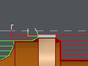 die Radierer Taste ermöglicht es Ihnen, ein Element zu "umgehen". Sie wird zum Beispiel für eine Nut verwendet, die Sie nicht schruppen möchten (wie im folgenden Bild gezeigt, wo die gelöschten Elemente mit einem roten Kreuz dargestellt sind).