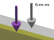 Anzeige: lila Pfeile werden angezeigt, um die ausgewählten Flächen zu kennzeichnen. Wenn das Rohteil ausgewählt ist, erscheint der Pfeil in Grau. Messungen können dann zwischen dem Volumen und dem Rohteil vorgenommen werden, um beispielsweise die zu entfernende Materialmenge zu bestimmen. |
