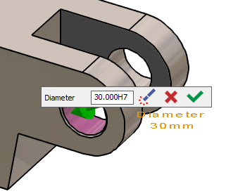 Der Durchschnittswert wird auf die Geometrie angewendet: D30.011 mm |