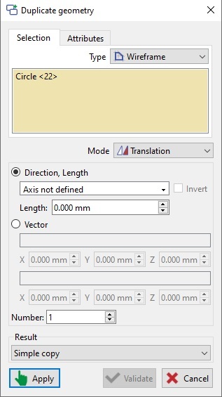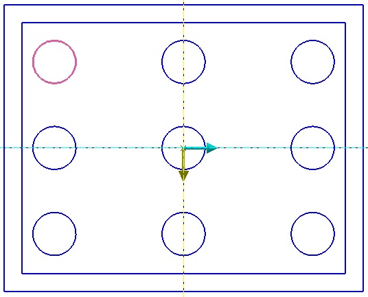 Für lineare Muster im Modus (Geometrie duplizieren), können Sie die Achsen „X“ und „Y“ auswählen, indem Sie auf eine beliebige Achse oder Geometrie klicken. Zwei Farben, Gelb und Hellblau, werden verwendet, um sie auf dem Bildschirm zu visualisieren.