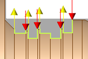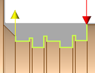 Wenn Sie mehrere Profile wie rechts gezeigt auswählen, ist die Bearbeitung nicht optimiert. Die Werkzeugwege haben keine Verbindung zueinander, jeder Einstich wird unabhängig bearbeitet. |