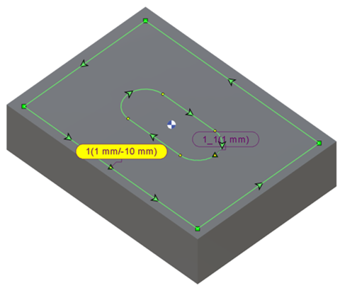 By default, on selecting a profile, that profile is considered closed. As such, any machining carried out will be within or outside the profile. This can be easily detected as the Grün color of the profile line. |