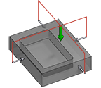 Tasten am Rohteil zur Definition des Teileursprungs. Wenn der Zyklus ausgeführt wird, fährt der Messtaster die Fläche an, um das Zentrum zu identifizieren. Der Werkzeugweg kann in der Simulation visualisiert werden. |