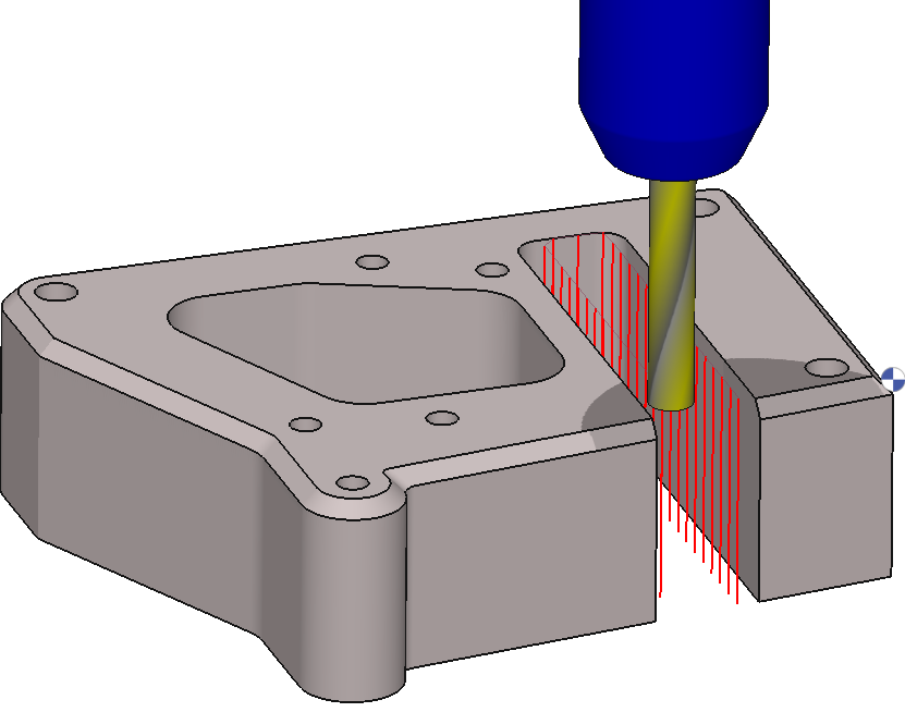Zyklus für Tauchbearbeitung, spezialisiert auf das Schruppen von Konturprofilen. Die Tauchbearbeitung ist schnell und produktiv dank der Abwesenheit von Biegung der Z-Achse und deutlich geringeren Vibrationen für die Maschine. |