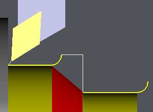 Diese Optionen können mit Anfahr- und Rückzugsabständen kombiniert werden. Hier kombinieren wir einen partiellen Radius von 45° mit einem Anfahrabstand von 5 mm. Der Rückzug ist ebenfalls 5 mm lang. |
