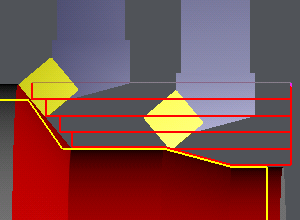 Gemischt ist die gewählte Option: Die erste Schräge kann ausgeführt werden, die zweite Schräge mit einem Winkel von 55° kann nicht vom Werkzeug verfolgt werden, es erfolgen direkte Rückzüge.