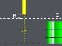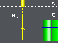 Das Werkzeug verbleibt auf der Höhe des letzten Schnitts. |
