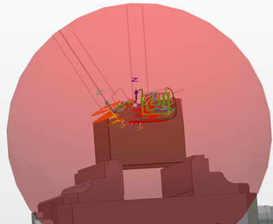 Mit der Arbeitsebene auf Kugel erhalten Sie ein universelles Werkzeug zur Definition der Sicherheitsbereiche. Hier werden die Kugeloption und die Ebenenoption in einer Einstellung kombiniert, was zu einer optimalen Einstellung für gefräste Komponenten führt. |