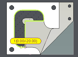 Wie bei jeder anderen Profilart, wenn sich am Boden der Tasche ein Radius befindet, wird das Profil um den Radiuswert versetzt erstellt.