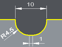 2. Der Einstich hat einen Flachboden mit einer 1 mm Breite . |