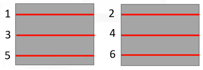 Nach DurchgängenDer Bearbeitungszyklus wird schichtweise über das gesamte Werkstück in Z-Ebenen durchgeführt. Das Werkzeug schließt alle Operationen auf einer Z-Ebene ab, bevor es zur nächsten übergeht und einem sequenziellen Pfad aus linearen und Eilgang-Werkzeugwegen folgt, um zwischen den Bearbeitungspositionen zu navigieren. |