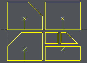 GO2cam erstellt den Punkt, wenn es möglich ist , entlang des längsten Elements des Profils und senkrecht zu seinem Mittelpunkt.