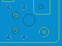 Umwandlung von Punkten, Bögen und Kreisen in Bohrungsobjekte mit nützlichen Informationen für die Bearbeitung. |