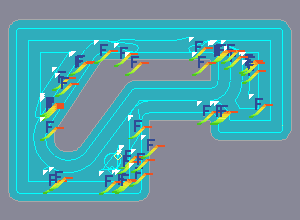 Wenn der Max. Überlappungskoeffizient größer ist als Überlappung (Werkzeugverhältnis) , werden trochoidale Bewegungen nicht überall, sondern nur an Ecken programmiert. Andernfalls wird der gesamte Werkzeugweg mit trochoidalen Bewegungen ausgeführt.