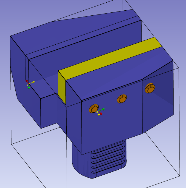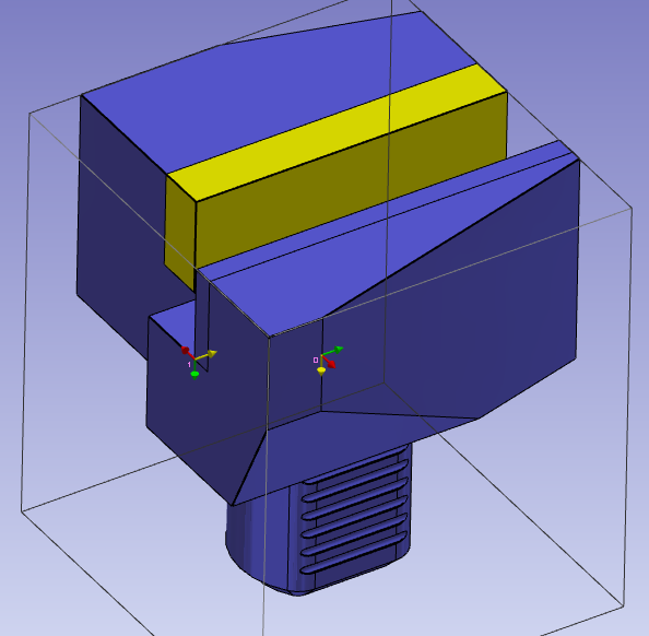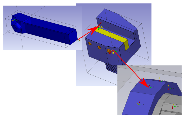 Wählen Sie die Flächen aus, um die Z- und X-Achsen auszurichten, und klicken Sie, um das Achsensystem zu definieren. Das Achsensystem mit der Referenz 0 definiert den Punkt, der auf das vorherige Element montiert wird. Das vorherige Element kann eine Werkzeugauflage oder eine andere Werkzeughalterkomponente sein. Der Mittelpunkt eines Kreises kann durch Drücken von STRG + UMSCHALT und anschließendes Klicken auf die Kreisbogenkante ausgewählt werden. Aktivieren Sie den Befehl „Richtungswechsel“, um die Z-Richtung zu ändern. |