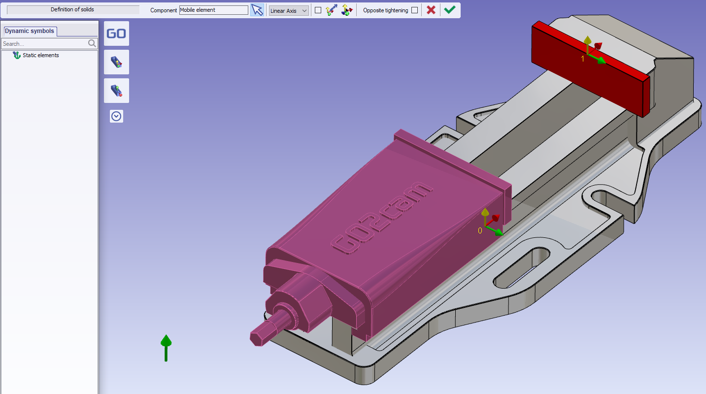 Bitte wählen Sie das bewegliche Element aus. Alle Geometrien, die nicht als bewegliches Element ausgewählt wurden, werden als festes Element betrachtet. |