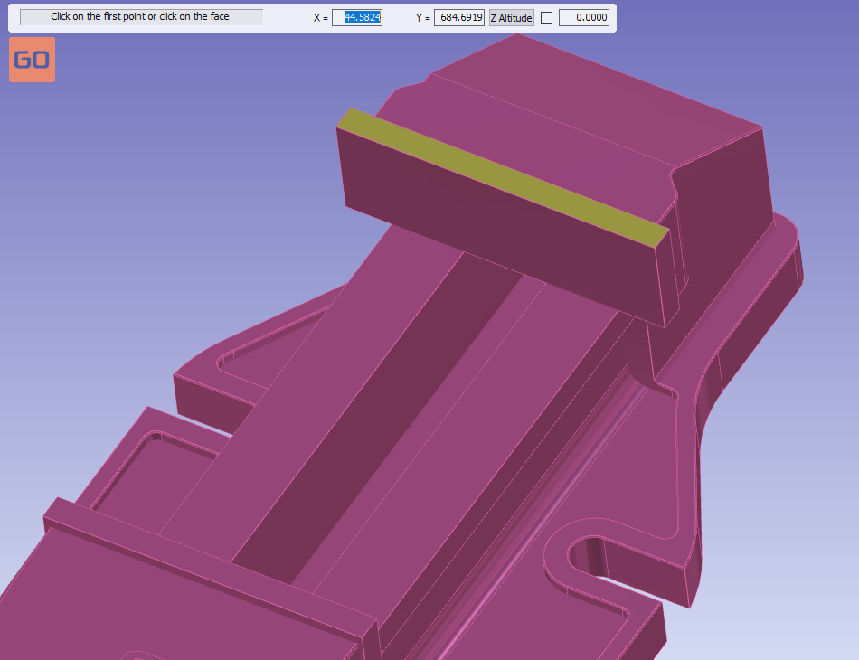 Klicken Sie auf die Ebenenfläche, um den Schraubstock zu orientieren. Die angeklickte Fläche hat die Z-Achse als Normalenvektor. |