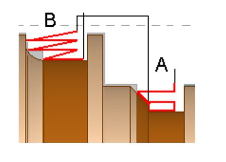 Bearbeitung mit einem Zickzack-Werkzeugweg. |