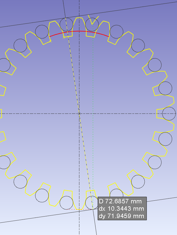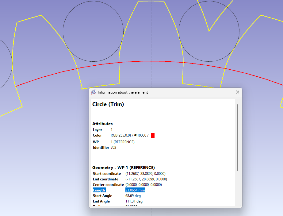 Les trois champs de gauche concernent la longueur d'arc pour le nombre de dents contrôlées où la dent est plus large.