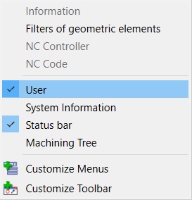 Notez qu'une barre d'outils peut être créée pour chaque technologie (Fraisage, Tournage, Érosion, Mise en plan etc.) mais celle ci est limitée une barre d'outils par technologie.