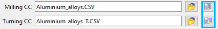 Pour créer des fichiers de conditions de coupe (*.CSV) à partir de zéro, donnez simplement un nom, cliquez sur l'icône ‘ + ’ et un nouveau fichier est automatiquement créé. |