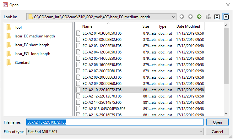 Dans la Première page, vous aurez la table d'outils comme montré ci-dessous. Pour créer un fichier de conditions de coupe, cliquez sur le bouton Ajouter Une liste complète de bibliothèques d'outils s'ouvrira où vous trouverez :