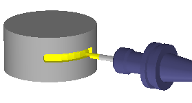 Création d'un plan développé autour d'un axe. Choisissez le distance (diamètre du cylindre) et l' axe de rotation . Une fois le plan créé, vous pouvez utiliser n'importe quelle commande filaire pour dessiner de la géométrie dans ce plan. Elle sera enroulée autour du cylindre. Vous pourrez ensuite programmer un usinage 2 axes qui sera enroulé autour de la forme. |