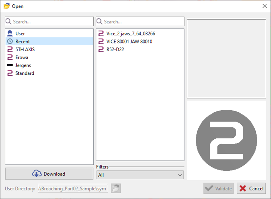 Fichiers Pack pour le fraisage, le tournage et le décolletage sont disponibles en téléchargement sur GO2cam. Vous pouvez télécharger une panoplie d'outils outils , porte-outils et composants machine tels que des étaux et brides depuis la bibliothèque d'outils de GO2cam. Le téléchargement se fait depuis le Cloud et les outils sont téléchargés automatiquement dans la bibliothèque.