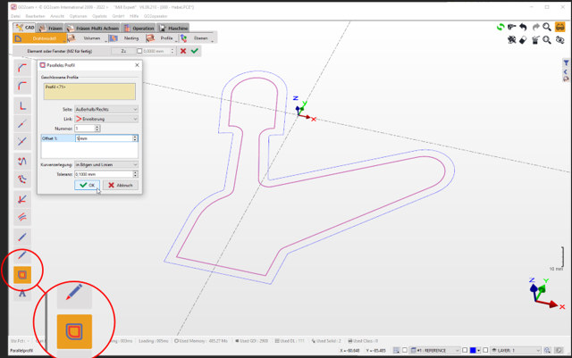 Les assistant peut être utilisé pour obtenir automatiquement ces références. Après avoir calculé le cycle de poche, sélectionnez la stratégie et l'outil pour le cycle de reprise (par exemple reprise de poche) avant de sélectionner la géométrie. En sélection de géométrie, cliquez sur l'icône de l'assistant puis sélectionnez le cycle de poche. Le diamètre de référence et les surépaisseurs sont automatiquement lus par GO2cam dans le cycle de référence et appliqués dans le cycle de reprise. |