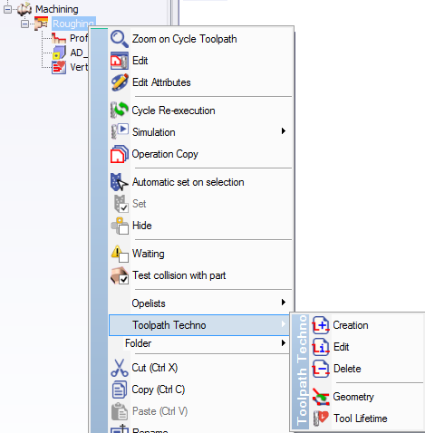 Le regroupement peut également se faire arbitrairement, cliquez sur la touche CTRL puis sélectionnez les cycles d'usinage à regrouper, clic droit allez à Dossier > Créer . |
