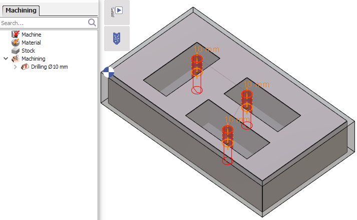 Maintenant, si vous appliquez l'opelist sur la pièce, la commande avant trou est automatiquement prise en compte et le point de départ de chaque poche se trouve au trou défini. |