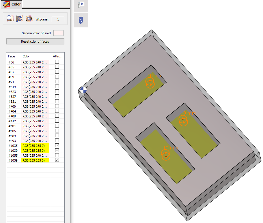 Comment automatiser l'usinage des poches par la couleur de leurs faces solides ? |