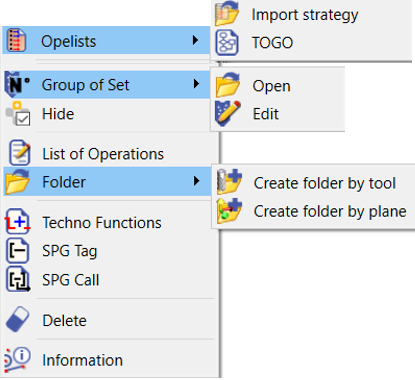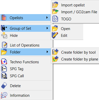 Développer/Réduire dossier a été déplacé de la popup dossier vers la popup Usinage. Il est disponible uniquement si des dossiers ont été créés dans l'arbre d'usinage. |