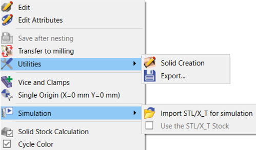 Simulation> Utiliser le brut STL/X_T |