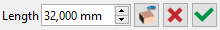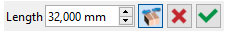 Then enter 32 mm. The button on the right shows a single arrow. It means that the modification is applied in one direction, according to the face clicked. (ou première face cliquée en cas de 'mesure entre faces'). |