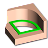 Ce mode n'est pas vraiment une mesure mais permet d'obtenir informations sur les faces du solide. Passez le curseur sur une face et elle affichera son type (plan, cylindre), l'orientation (verticale, horizontale, conique…) et parfois une valeur (rayon, angle,…). Cette commande peut être utilisée aussi bien dans l'environnement de conception que dans les menus d'usinage lors de la sélection de géométries ou d'outils. Les informations fournies peuvent aider par exemple à sélectionner l'outil approprié.