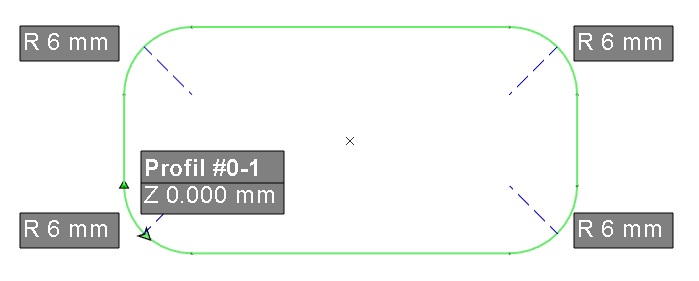 Certaines informations sont affichées à l'écran, sur le profil : numéro de profil, altitude Z, valeurs des rayons.