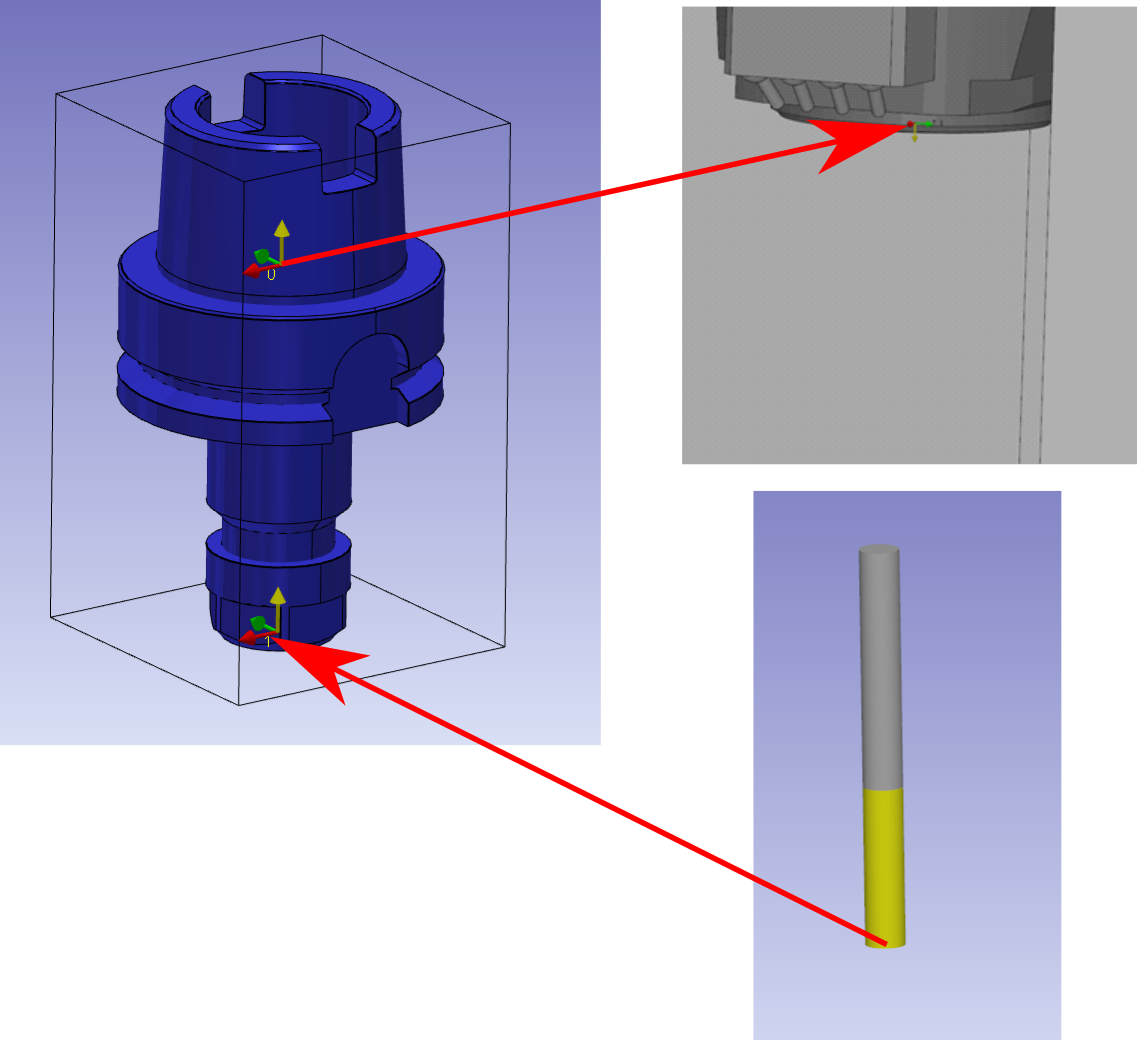 Le système d'axes 0 est le point de montage sur la broche.