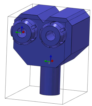 Le système d'axes référencé 0 définit le point qui sera monté sur l'élément précédent. L'élément précédent peut être un support d'outil ou un autre composant de porte-outil. CTRL + SHIFT puis en cliquant sur l'arête de l'arc. Le centre d'un cercle peut être sélectionné en appuyant sur Puis validez. Faites la même commande pour créer le système d'axes 1. Ce sera la position de montage pour l'outil ou l'élément suivant. |