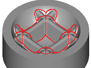 Le contour bi tangent est un contournage 3D qui enlève de la matière sur les zones de bi tangence, c'est-à-dire les zones ayant plusieurs contacts entre l'outil et la pièce. |